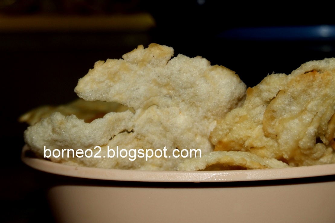 Emping is the name of a type of Indonesian chips, a bite-size snack kripik cracker made of melinjo or belinjo(gnetum gnemon) nut. The emping crackers have a slightly bitter taste. The emping snack available in the market can be plain (original), salty or sweet depends on the addition of salt or caramelized sugar. (Wikipedia)